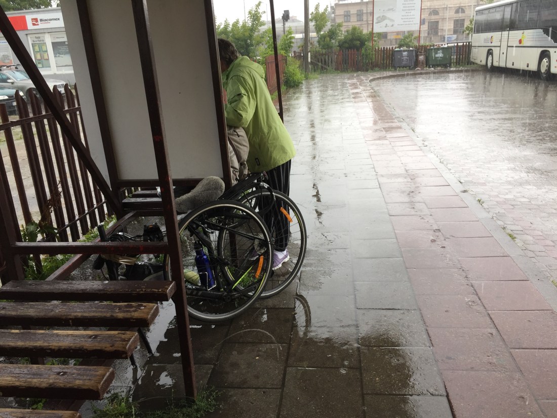BLOODY good day to be in a bus. It stopped shortly after and we were able to enjoy the trip. There is no way you could cycle on a main road in this part of Europe which is why we need to get onto EV11 at Vilnius .The trucks were so thick they looked like they were linked together , and there’s no berm to speak of. This is a monotonous way to travel though and we’re itching to get biking again.