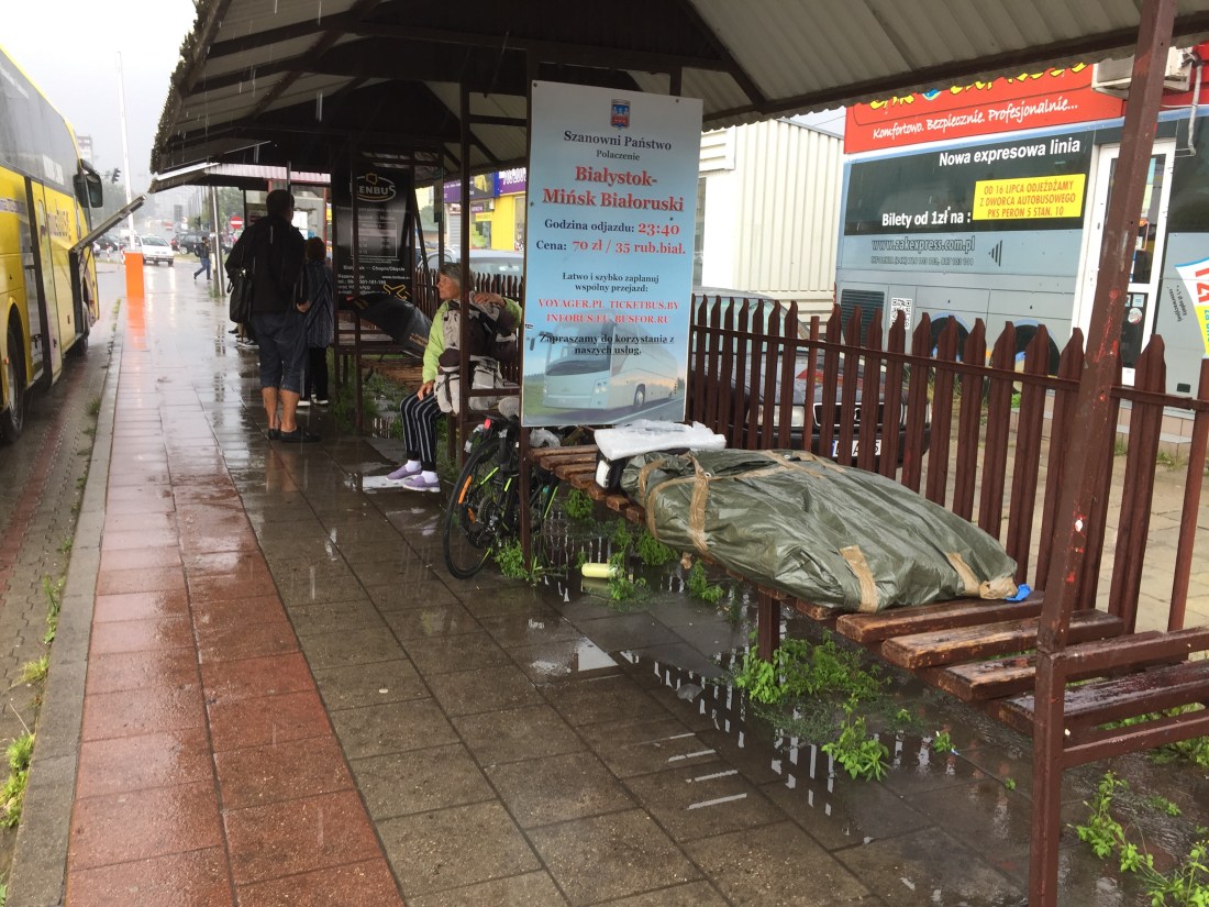 Getting out of Poland with bikes is proving difficult. We’re trying to get to the same latitude as GdaÅ„sk before we start biking again at Vilnius in Lithuania. For some reason cross border trains out here in the Baltic states, only run in the weekends. We need to keep moving if we’re ever going to bike all the way around so I investigated the buses. Heaps of them ,but only one company, eurolines, will take bikes and they have to be packaged. We’ve learnt not to trust all we read so we went down to the bus depot last night at 11.45 to ask the driver. Yes , but you’ll have to pay an extra 30 Zlotys. ( $12 ) Great , the tickets are dirt cheap anyway.