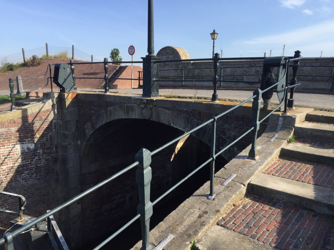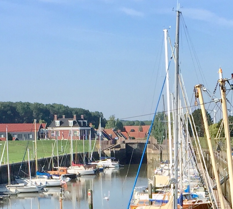 Termunterzijl. We stopped for coffee by the bridge. The old harbour was formed when that stop gate was built in 1601.