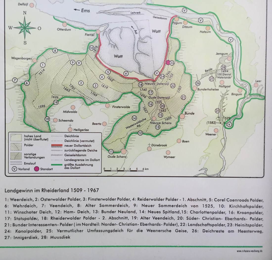 There’s a ring of flood banks around the Dollart estuary that tells of earlier reclamation’s . Each with a set of boards ready to block out the sea