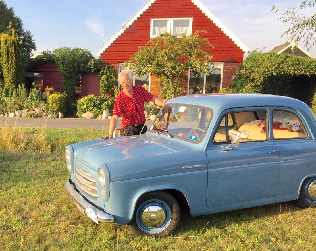Slochteren. We have a really cute little Flat on the left side of the house. Geert was happy to bring his Prefect 100E out for a photo shoot and then took me for a tour in it. My brother had one of these